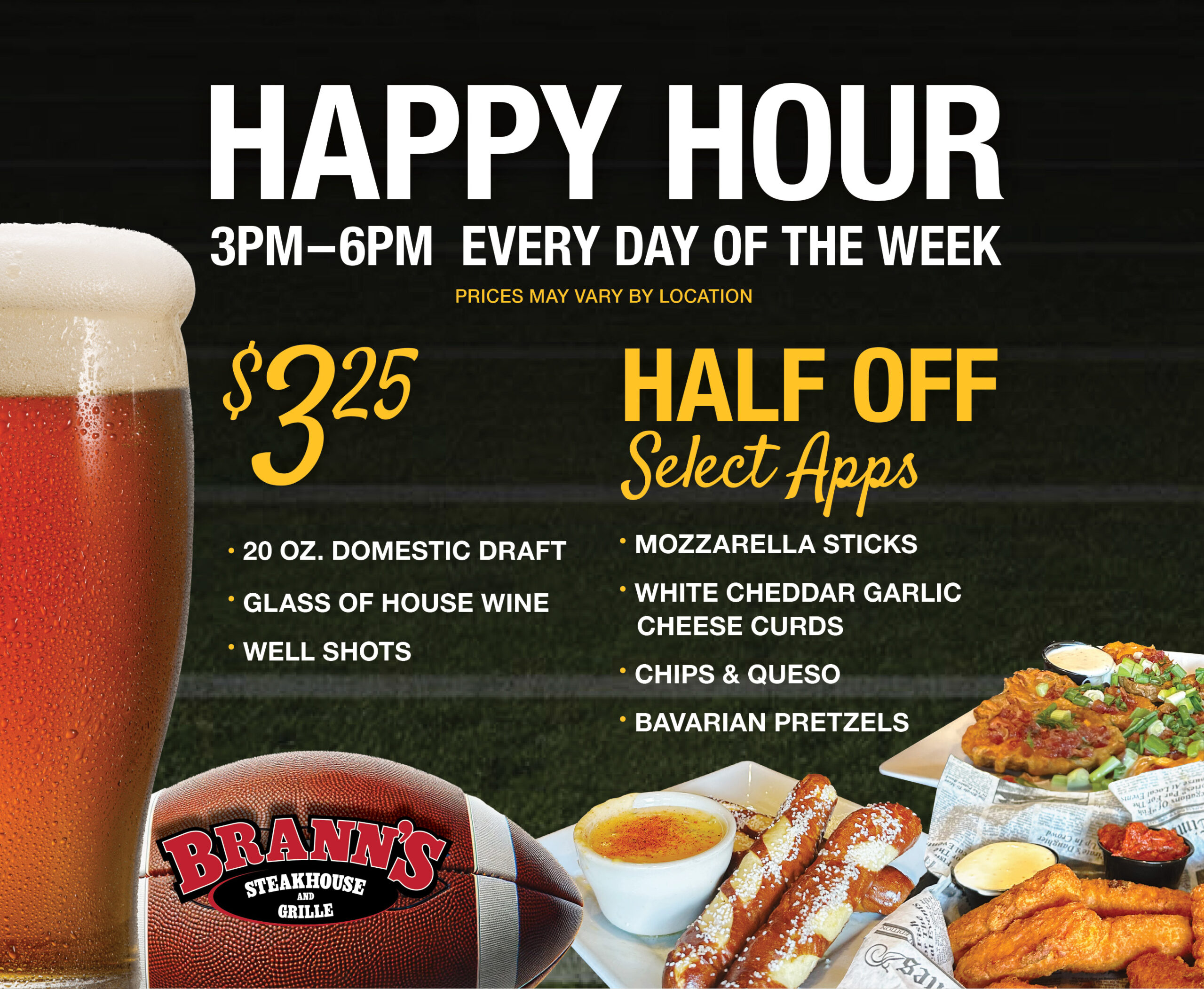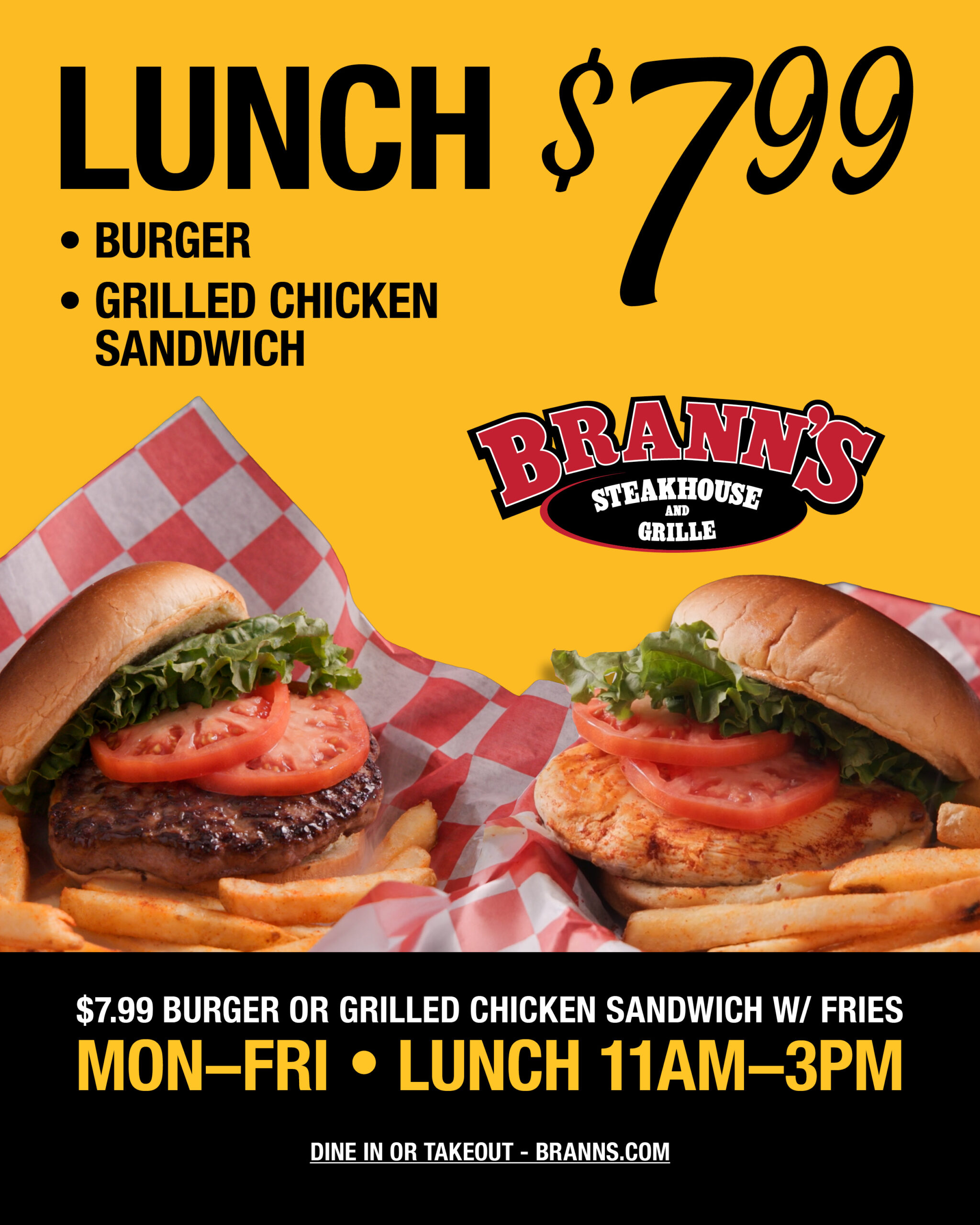 No matter what day of the week it is, Brann’s Steakhouse and Grille always has a special for you and your family!